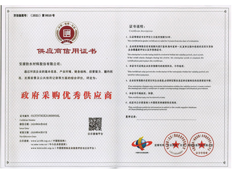 供应商信用证书